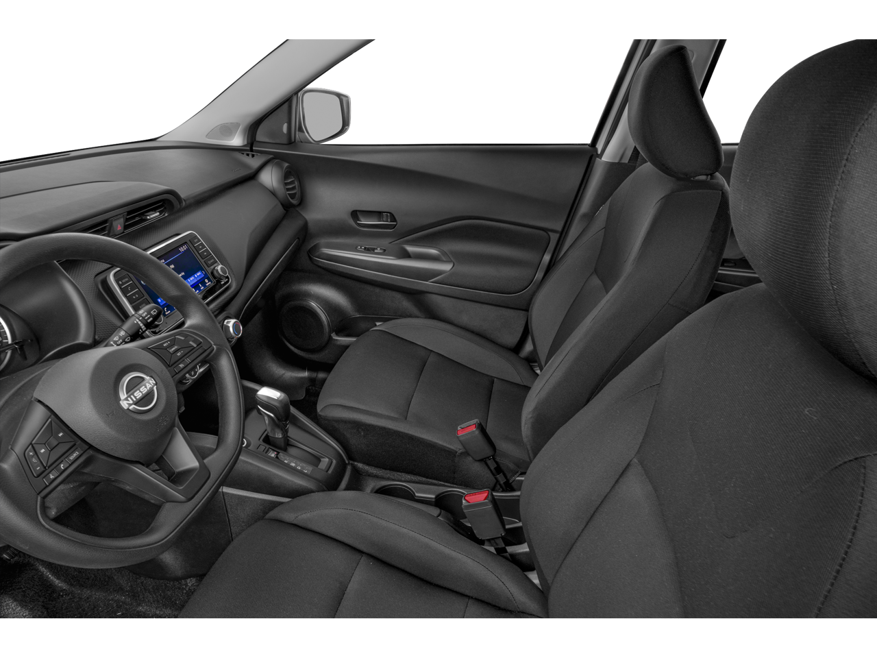 Slip into the comfort of the Kicks S's cloth-trimmed seats and enjoy the convenience of the Center Armrest with Storage. The Splash Guards Grain (4 Piece) add a touch of rugged elegance, while the Carpeted Floor Mats with Cargo Mat provide a refined, tailored look.